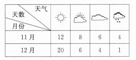 1. 这两个月里( )天最多;12月份的晴天比11月份的晴天多( )天。