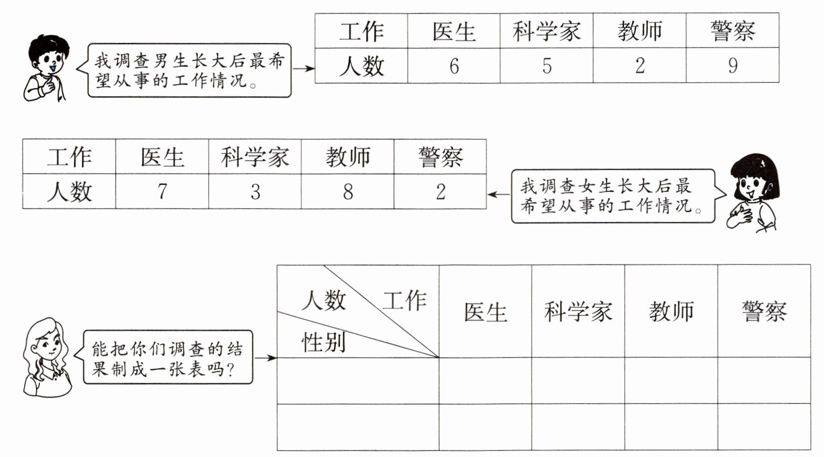 1.警察 教师 2.科学家 8 3.(答案不唯一)长大后最希望从事医生的同学最多。