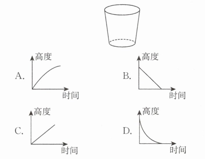 2. 用固定的速度往如图所示形状的杯子里注水,则能表示杯子里水面的高度和注水时间的关系的大致图象是(