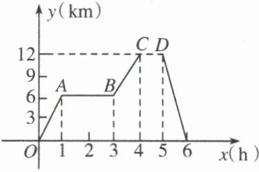 小明在 6 小时内共骑行 $ 12 × 2=24 $ (千米).