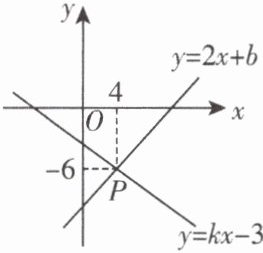 9. 如图所示,已知函数$y= 2x+b与函数y= kx-3$的图象交于点P,则不等式$kx-3>2x+b$的解集是
