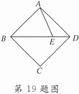 19. 如图,在菱形$ABCD$中,点$E为对角线BD$上的点,且$BA = BE$。若$\angle ABC = 80^{\circ}$,则$\angle BAE$的大小是(