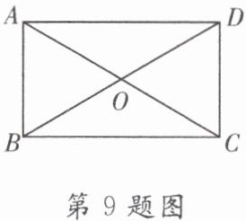 9. 如图,在矩形$ABCD$中,对角线$AC$,$BD相交于点O$,$\angle AOB = 60^{\circ}$,$AC = 6cm$,则$AB$的长是(