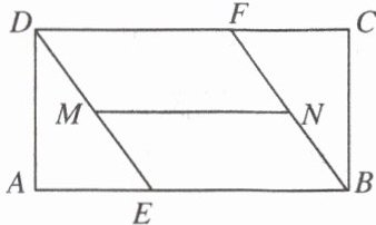 (2)解:∵ 四边形BEDF是平行四边形,∴ DE//BF 且 DE = BF.∵ M为DE中点,N为BF中点,∴ DM = $\frac{1}{2}$DE,FN = $\frac{1}{2}$BF.∴ DM = FN.又 ∵ DM//FN.∴ 四边形DMNF是平行四边形.∴ MN = DF = CD - CF = AB - CF =