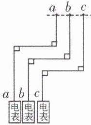 1. 如图,有a,b,c三户家用电路接入电表,相邻电路的电线等距排列,则三户所用电线(