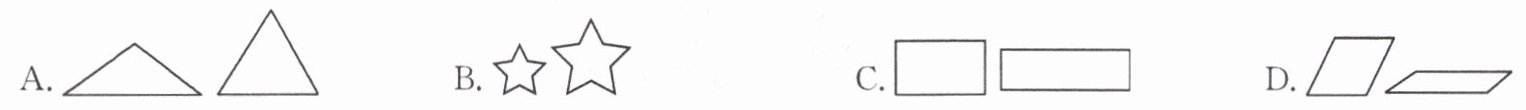 解析:A项形状相同,但大小不同,符合相似形的定义;B项形状相同,但大小不同,符合相似形的定义;C项形状相同,但大小不同,符合相似形的定义;D项形状不相同,不符合相似形的定义.