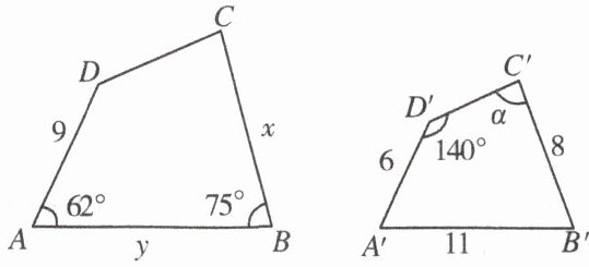 $\therefore \angle C' = 360^{\circ}-62^{\circ}-75^{\circ}-140^{\circ}=83^{\circ}$.