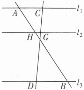 【典型例题 1】如图,直线$l_{1}// l_{2}// l_{3}$,已知$AG = 0.6cm$,$BG = 1.2cm$,$CD = 1.5cm$,求$CH$的值.