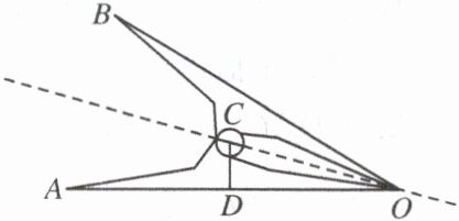 9. 如图是一个铁夹子的侧面示意图,点$C$是连接夹面的轴上一点,$CD\perp OA于点D$.这个侧面图是轴对称图形,直线$OC$是它的对称轴.已知$DA = 15mm$,$DO = 24mm$,$DC = 10mm$.求点$A与点B$之间的距离.