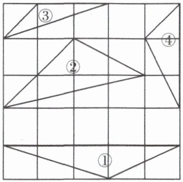4.B [解析]①号三角形的边长分别为$\sqrt{5}$,$\sqrt{10}$,5;②号三角形的边长分别为$\sqrt{5}$,2$\sqrt{2}$,$\sqrt{17}$;③号三角形的边长分别为$\sqrt{2}$,2,$\sqrt{10}$;④号三角形的边长分别为$\sqrt{2}$,$\sqrt{5}$,3;对应边成比例的是①和③.故选B.