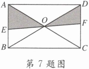 7. 如图,矩形 $ABCD$ 的对角线的交点为 $O$,$EF$ 过点 $O$ 且分别交 $AB$,$CD$ 于点 $E$,$F$,则图中阴影部分的面积是矩形 $ABCD$ 的面积的(