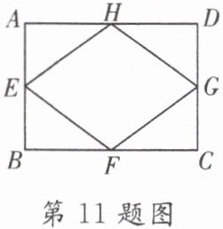 11. 如图,已知矩形 $ABCD$ 的对角线长为 $8cm$,$E$,$F$,$G$,$H$ 分别是 $AB$,$BC$,$CD$,$DA$ 的中点,则四边形 $EFGH$ 的周长等于______ $cm$.