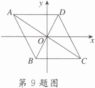 9. 如图,$□ ABCD$ 的对角线交于坐标原点 $O$,点 $A$ 的坐标为 $(-3,2)$,点 $B$ 的坐标为 $(-1,-2)$,则点 $C$ 的坐标为______