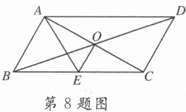 8. 如图,$□ ABCD$ 的对角线 $AC$,$BD$ 交于点 $O$,$AE$ 平分 $\angle BAD$,交 $BC$ 于点 $E$,且 $\angle ADC = 60^{\circ}$,$AB= \frac{1}{2}BC$,连接 $OE$,下列结论:① $\angle CAD = 30^{\circ}$;② $OD = AB$;③ $S_{□ ABCD}= AC\cdot CD$;④ $S_{四边形OECD}= \frac{3}{2}S_{\triangle AOD}$,其中成立的个数为(