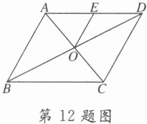 12. 如图,$□ ABCD$ 的对角线 $AC$、$BD$ 相交于点 $O$,$OE// AB$ 交 $AD$ 于点 $E$,若 $OA = 1$,$\triangle AOE$ 的周长等于 5,则 $□ ABCD$ 的周长等于______