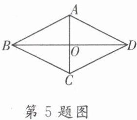 5. 如图,在菱形 $ABCD$ 中,对角线 $AC$,$BD$ 相交于点 $O$,下列结论:① $AC\perp BD$;② $OA = OB$;③ $\angle ADB= \angle CDB$;④ $\triangle ABC$ 是等边三角形,其中一定成立的是(