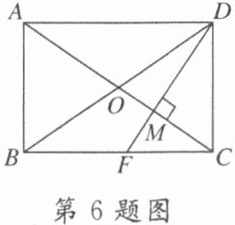 6. 如图,在矩形 $ABCD$ 中,对角线 $AC$,$BD$ 相交于点 $O$,若 $DF\perp AC$ 交 $AC$ 于点 $M$,$\angle ADF:\angle FDC = 3:2$,则 $\angle BDF= $(