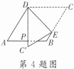 4. 如图,在菱形纸片 $ABCD$ 中,$\angle A = 60^{\circ}$,折叠菱形纸片 $ABCD$,使点 $C$ 落在 $DP$($P$ 为 $AB$ 中点)所在的直线上,得到经过点 $D$ 的折痕 $DE$.则 $\angle DEC$ 的大小为( )