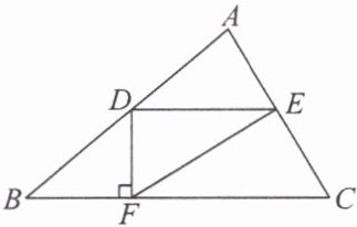 2. 如图,在$\triangle ABC$中,点$D$,$E分别是AB$,$AC$的中点,连接$DE$。过点$D作DF\perp BC于点F$,连接$EF$。若$\triangle DEF的面积为1$,则四边形$DECB$的面积为( )