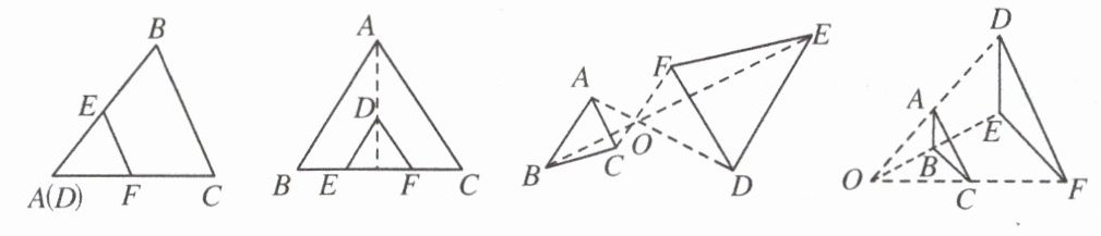 1. 如图所示,$\triangle DEF是\triangle ABC$位似图形的几种画法,其中正确的个数是(