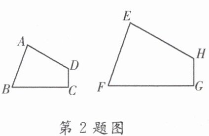 2. 如图,四边形 $ABCD \sim$ 四边形 $EFGH$,$\angle A = 80^{\circ}$,$\angle C = 90^{\circ}$,$\angle F = 70^{\circ}$,则 $\angle E$ 的度数为(