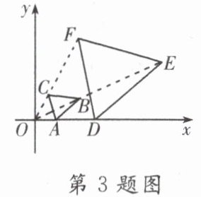 3. 如图,在平面直角坐标系中,已知 $\triangle ABC$ 与 $\triangle DEF$ 是位似图形,原点 $O$ 是位似中心,相似比为 $1:3$,若 $AB = 3$,则 $DE$ 的长为(