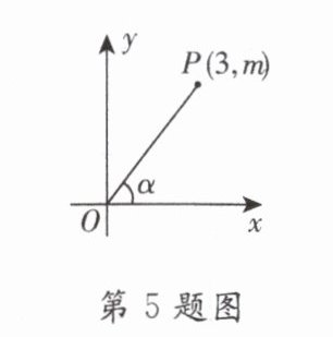5. 如图,在平面直角坐标系中,$ P $ 是第一象限内的点,其坐标是 $ (3, m) $,且 $ OP $ 与 $ x $ 轴正半轴的夹角 $ \alpha $ 的正切值是 $ \frac{4}{3} $,则 $ \sin \alpha $ 的值是( )