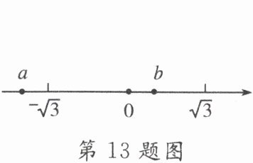 13. 实数$a$、$b$在数轴上所对应的点如图所示,则$|\sqrt{3}-b|+|a+\sqrt{3}|+\sqrt{a^{2}}$的值