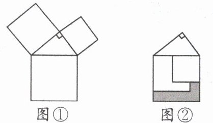 8. 勾股定理是人类最伟大的科学发现之一,在我国古代《周髀算经》中早有记载.如图①,以直角三角形的各边为边分别向外作正方形,再把较小的两张正方形纸片按图②的方式放置在最大正方形内.若图中阴影部分图形的面积为$3$,则较小两个正方形重叠部分图形的面积为(