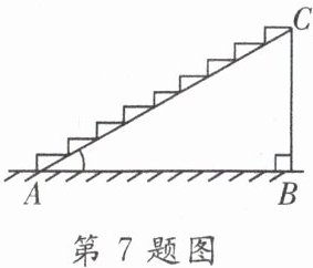 7. 如图所示是一段楼梯,高$BC是3m$,斜边$AC是5m$,如果在楼梯上铺地毯,那么至少需要地毯(