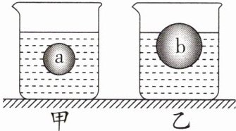 8. 在物理实验课上,同学们进行了液体密度和小球浮力的实验。如图所示,水平桌面上两只相同的烧杯中分别盛有甲、乙两种不同液体,a、b两个质量相同的小球,a球的体积小于b球,在液体中静止时,两烧杯液面相平,则(