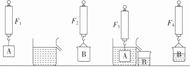 4. 在探究浮力问题时,某同学做了如图所示的实验。测量时弹簧测力计的示数分别是$F_{1}$、$F_{2}$、$F_{3}和F_{4}$。其中符合阿基米德原理叙述的等量关系的是(