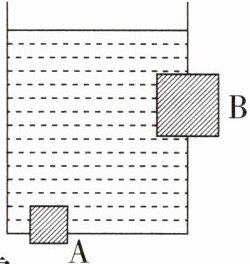 1. 如图所示,一个圆柱形的容器,底部和侧壁分别有一个木塞A和B,A、B排开水的体积相等,则以下说法正确的是(