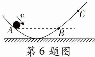 6. 如图所示,粗糙的弧形轨道竖直固定于水平面,一小球由$A点以速度v$沿轨道滚下,经另一侧等高点$B后到达最高点C$。下列关于小球滚动过程的分析正确的是(