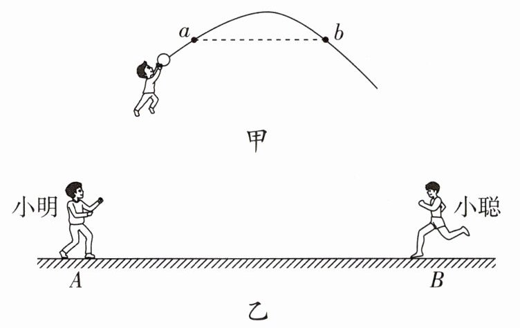 (2)小明在操场上投实心球。图甲是整个抛球运动过程的示意图,轨迹上$a$、$b$两点在同一高度,空气阻力不可忽略。关于球的运动,下列说法正确的是(
