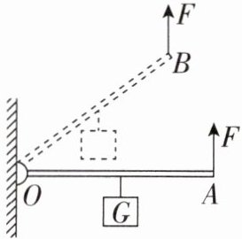 6. 一个建筑工人正在使用杠杆来搬运重物,他注意到当杠杆从水平位置提升到倾斜位置时,所需的力发生了变化。如图所示,在轻质杠杆OA中点悬挂重为100N的物体,在A端施加一竖直向上的力F,杠杆在水平位置平衡,保持F的方向不变,将杠杆从A位置匀速提升到B位置的过程中,力F将( )