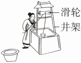 5. 如图所示是古代人利用滑轮打水的场景。井架上安装一个滑轮,绕过滑轮的绳索一端悬吊水桶,当人用力向下拉动绳索的另一端,即可让水桶上升。以下方法能提高滑轮提水的机械效率的是(