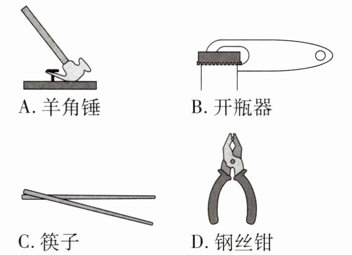 1. 小明在家帮忙做家务,他尝试了几种不同的工具来完成任务。如图所示是他所使用的机械或工具,其中属于费力杠杆的是(