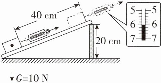 9. 如图所示,用弹簧测力计沿粗糙斜面匀速向上拉动木块,用时2s,由图中数据可知,拉力的功率是