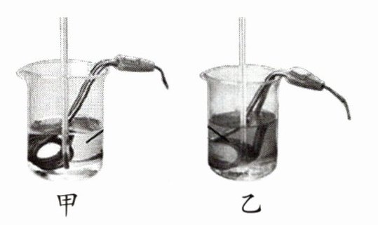 来判断吸热能力的强弱;(2) 通过实验,记录数据如表格所示。从开始加热到40℃,甲、乙两种液体吸收热量的关系为$Q_{甲}$
