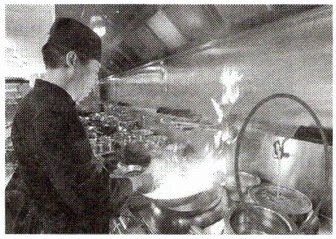 16. 如图所示,为什么大厨炒菜老是把水龙头开着?其中一个原因是炉灶长时间高温运作,会导致灶台表面温度很高。保持水流给灶台降温,主要是利用了水的