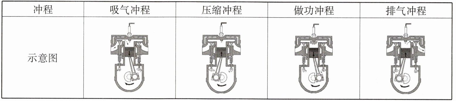 3. 工作过程:下表表示汽油机的工作过程。