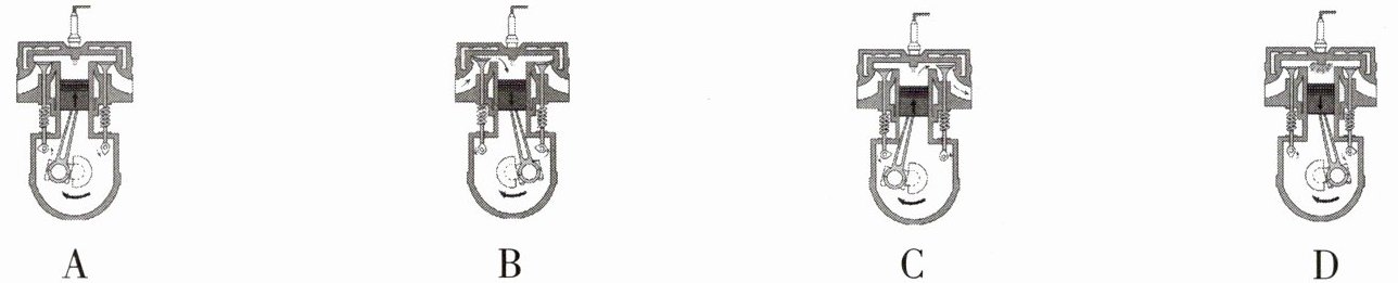 D 【解析】热机的四个冲程:吸气冲程、压缩冲程、做功冲程、排气冲程,根据气门的闭合情况和活塞的运动方向判断是哪一个冲程;内燃机的四个冲程中有两个冲程发生能量转化,一是压缩冲程中将机械能转化为内能;二是做功冲程中将内能转化为机械能。故选D。