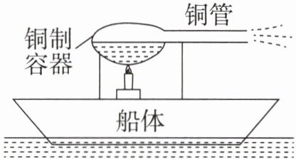 【跟踪训练4】如图所示是小明制作的简易“蒸汽船”模型。将盛有一定量水的铜制容器安装在“船体”上,用蜡烛对铜制容器底部加热,一段时间后铜管会向右喷蒸汽,“蒸汽船”就向左行驶。