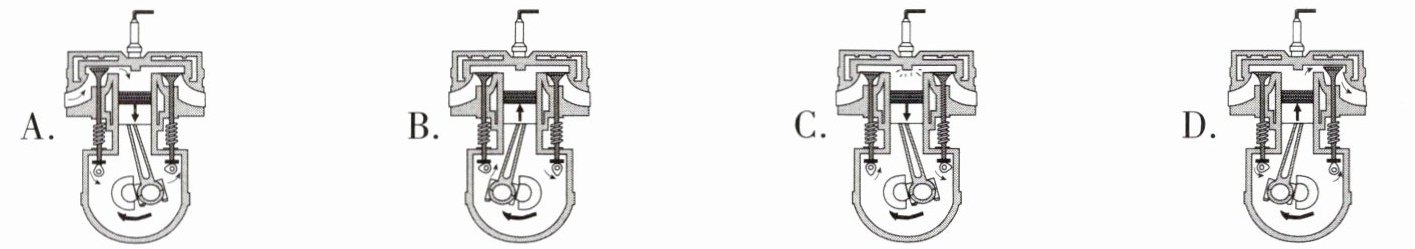 3. 新素养〔物理观念〕燃放烟花实质上是烟花内的火药被点燃,产生高压燃气瞬间冲破纸膜的过程,此过程能量转化与下列图中热机工作循环的哪个冲程相似 (
