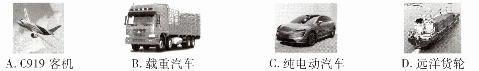 1. 中国现代交通运输发展情况总体呈现出显著的提升和进步。下列交通或运输工具中,动力设备不是热机的是 (