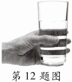 12. 如图所示,用20N的力握着一重为3N的装有水的玻璃杯静止悬在空中时,杯子所受摩擦力方向