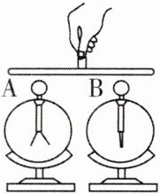 B [解析]A带负电,B不带电,用带有绝缘手柄的金属棒把A和B连接起来,A上的部分负电荷会转移到B上,因此验电器B的两片金属箔由于都带负电会张开;电流的方向与负电荷定向移动的方向相反,因此电流方向是由B到A。故选B。