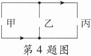 4. 如图所示,箭头表示接好电路时电流的方向,甲、乙、丙三处分别接有电源、电灯和电铃,根据电流的方向可以判断出电源在 (