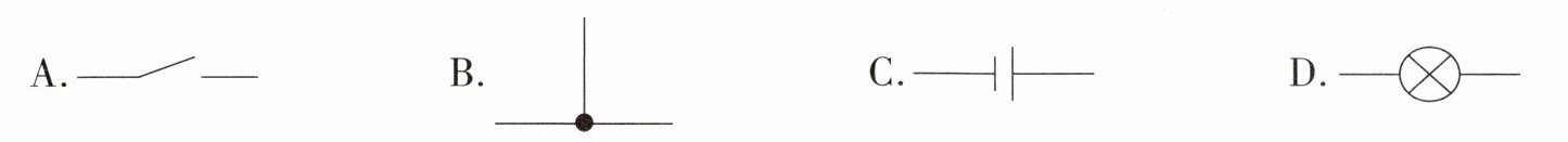 A [解析]电路中的开关控制着电流的通断,门禁卡与电路中的开关作用相同,控制人和车辆的进入,A为开关、B为交叉相连的导线、C为电池、D为灯泡,故A正确,BCD错误。故选A。